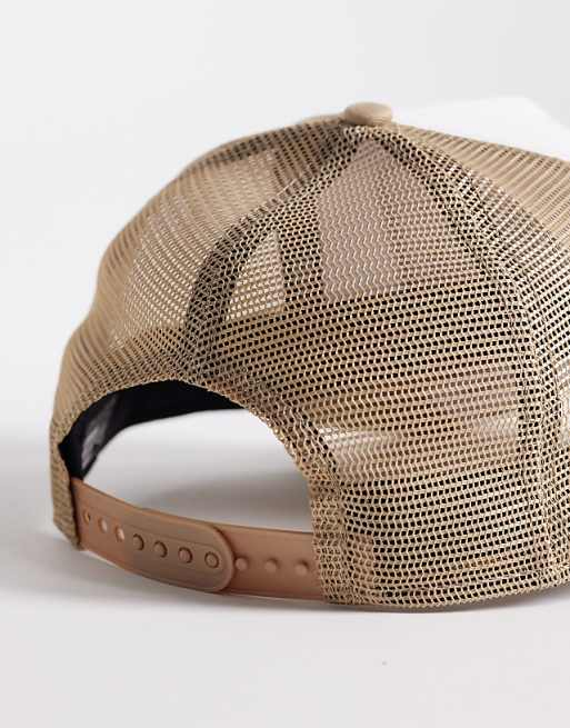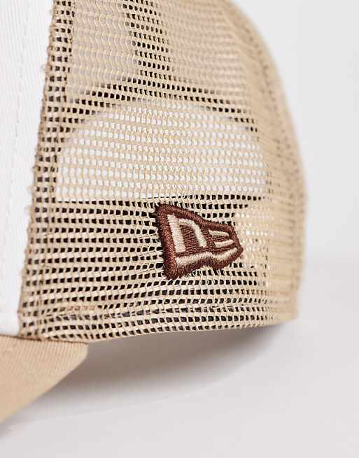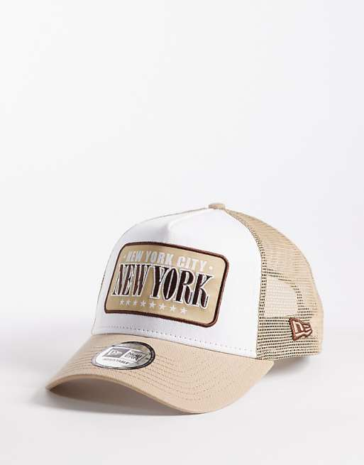 New Era New York location patch trucker cap in beige/white