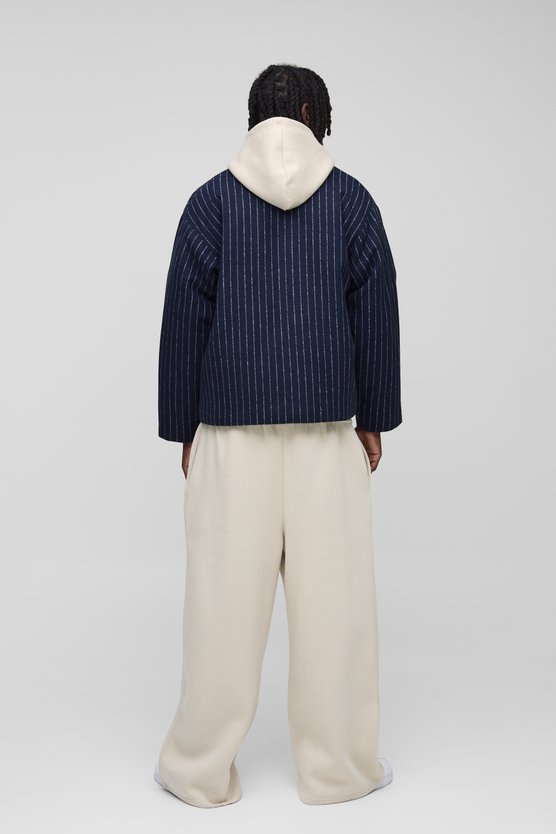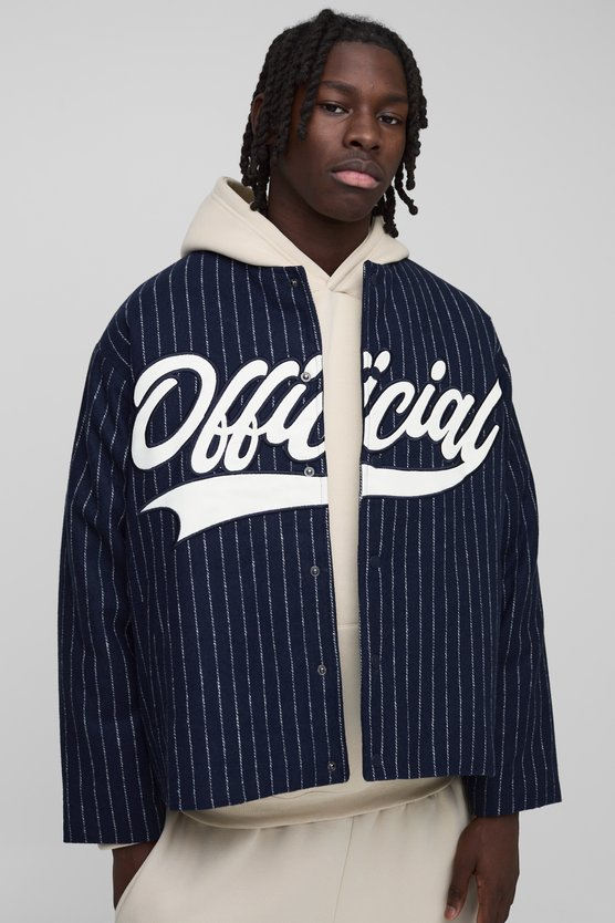 Oversized Collarless Stripe Baseball Varsity Jacket